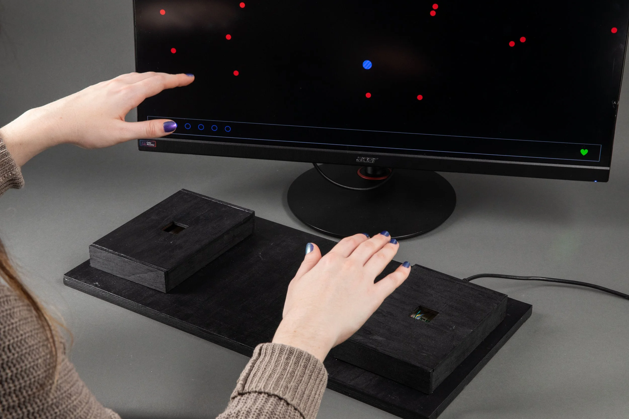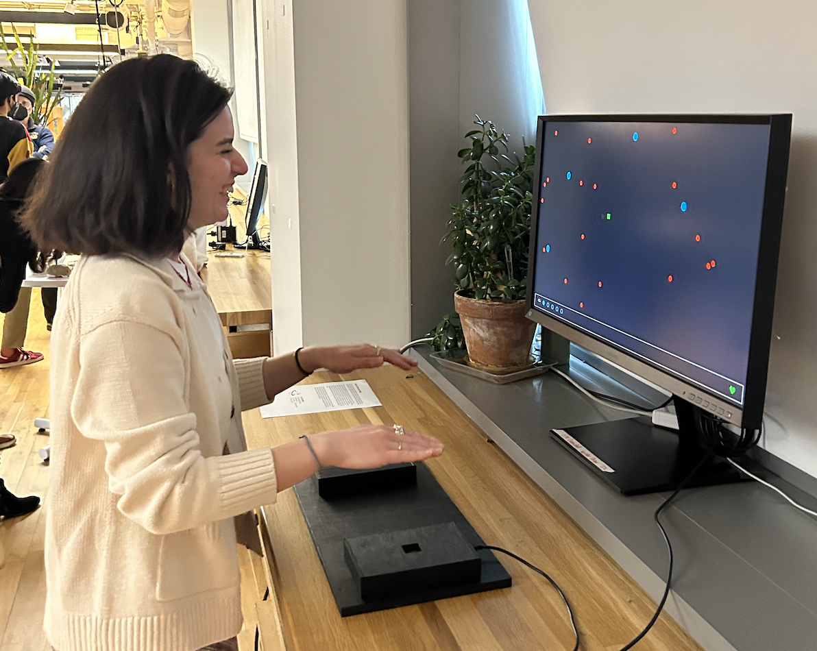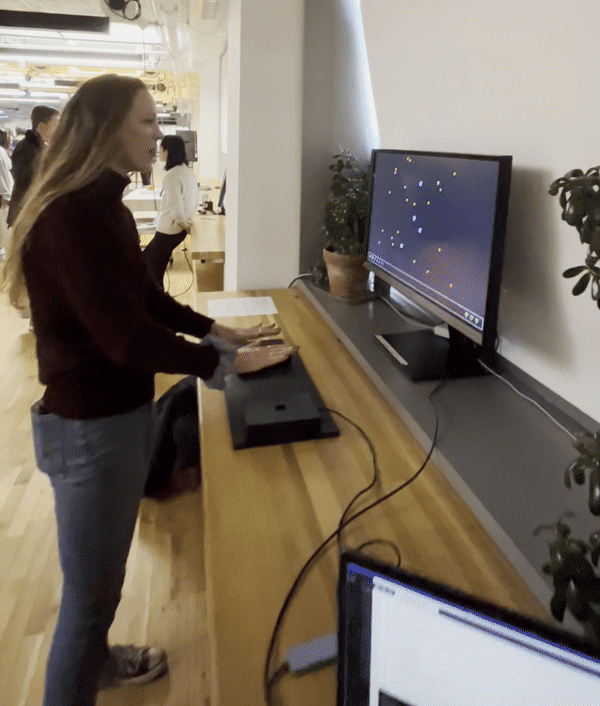 Cosmic Catch & DodgeCosmic Catch and Dodge is an entirely touchless game that challenges the player to control an object on the screen using hand movements in a game that uses focus, hand-eye coordination, and precise mobility. ITP/IMA Winter Show Interview What Should I Listen to Right Now? ⟶